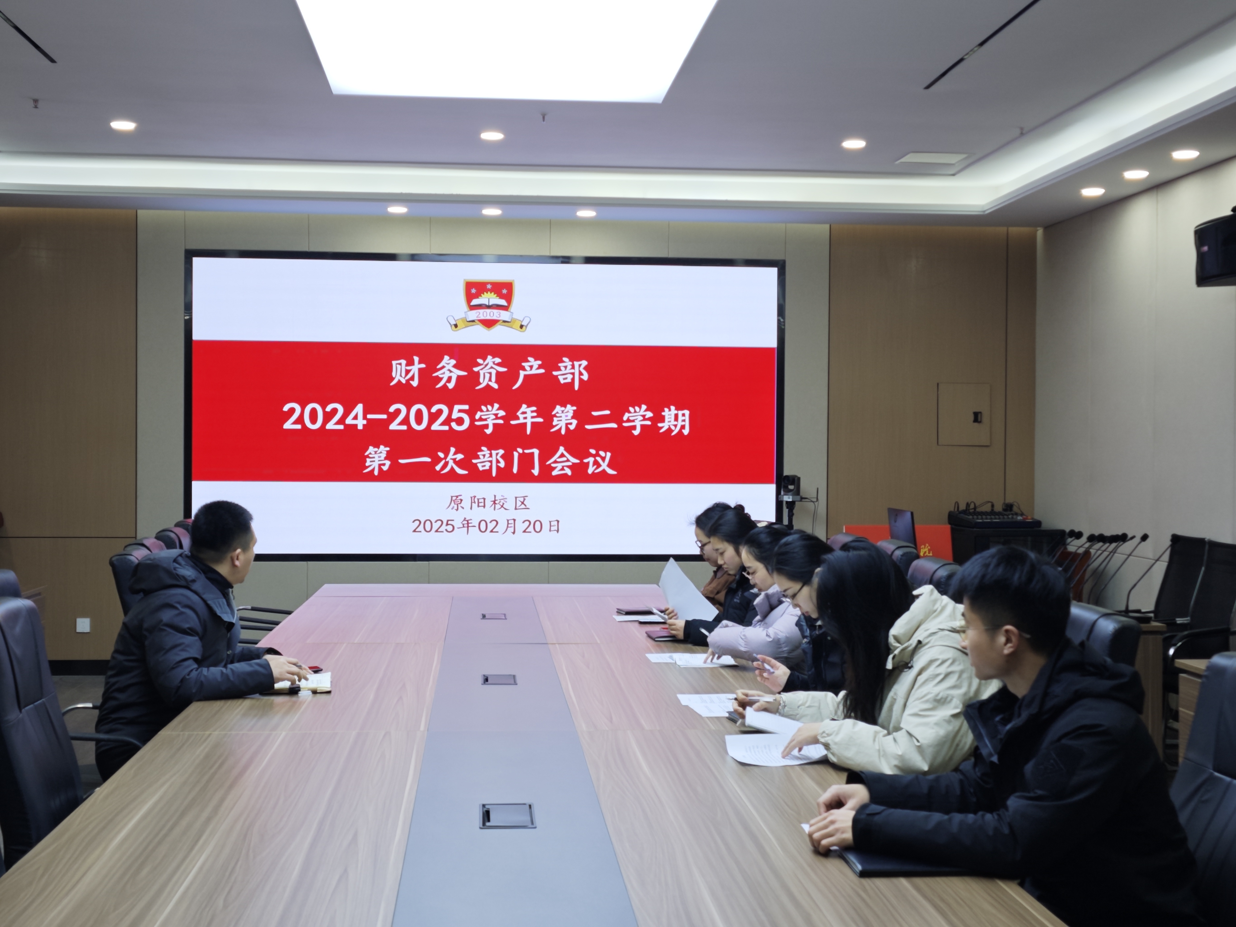 2025年2月20日,安阳学院原阳校区财务资产部全体成员齐聚图书馆7楼会议室,召开2024-2025学年第二学期首次部门工作会议。会议由财务资产部副部长高帅主持,通过全面总结前期工作成效、系统梳理现存问题、科学规划发展路径,为新学期工作锚定方向。
