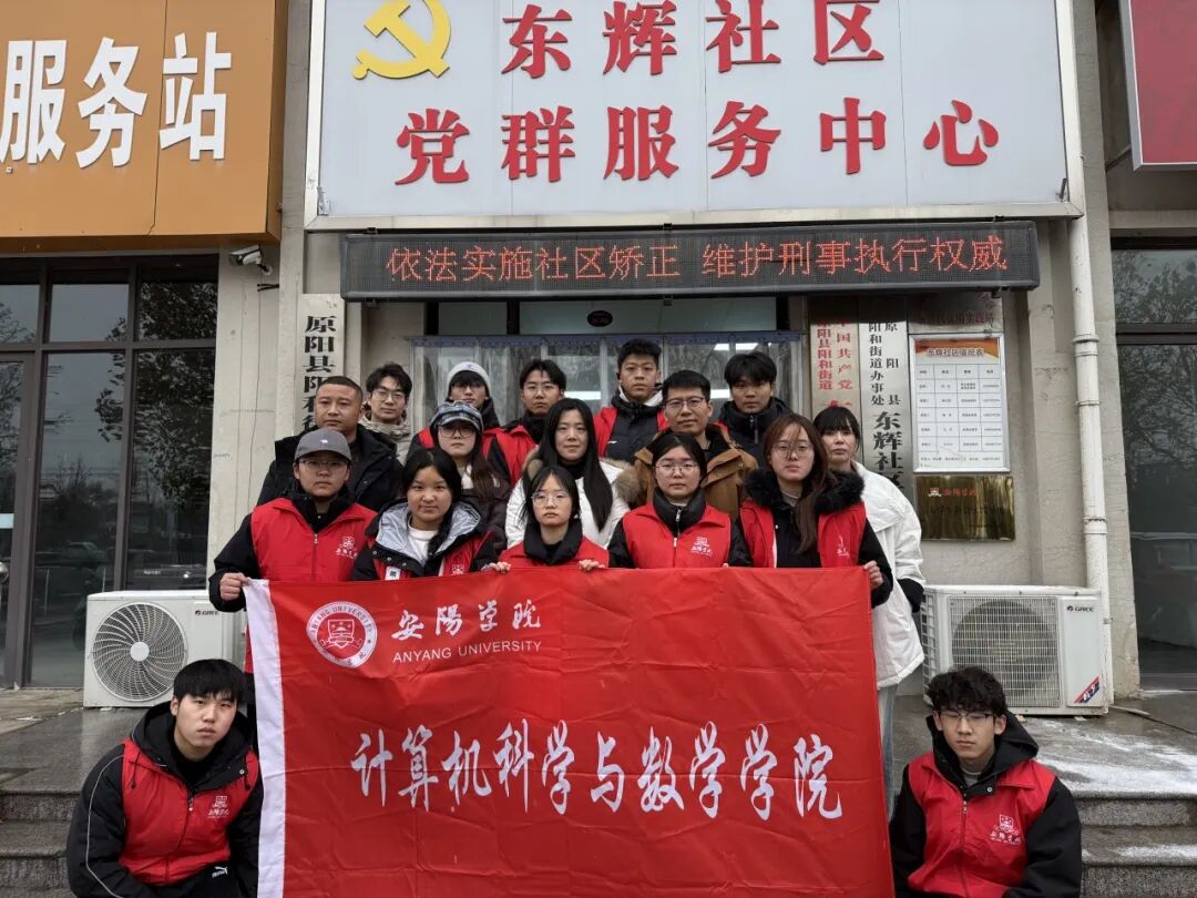 冬日初雪落,温情暖人心。为深化大学生社会实践育人成效,践行志愿服务精神,12月12日,安阳学院原阳校区计算机科学与数学学院党总支闫萌、彭匿笑、朱焕燃三位老师及12名党员志愿者,冒雪前往原阳县阳和街道东辉社区,举行“安阳学院计数学院大学生社会实践基地”挂牌仪式,并同步开展主题志愿服务活动,以实际行动为社区居民送去关怀与温暖。东辉社区党支部书记张志凯及相关负责同志热情接待并参与相关活动。